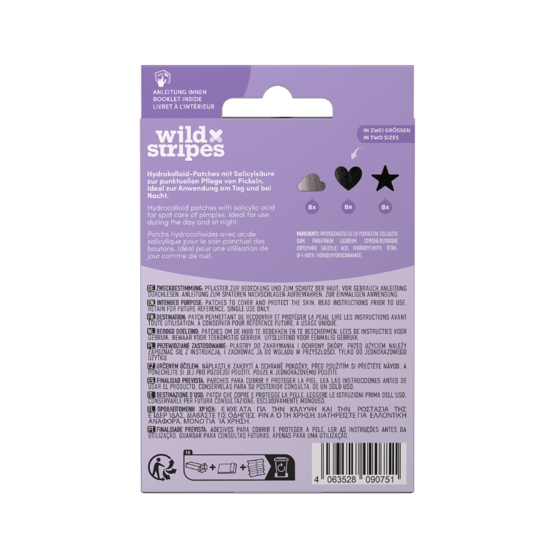 Para um tratamento anti-borbulhas discreto e eficaz! Os Adesivos Wild Stripes Holo Clear são a solução invisível que atua enquanto protege. Com tecnologia holo transparente, estes adesivos tornam-se quase imperceptíveis na pele enquanto trabalham ativamente graças ao ácido salicílico na sua fórmula.