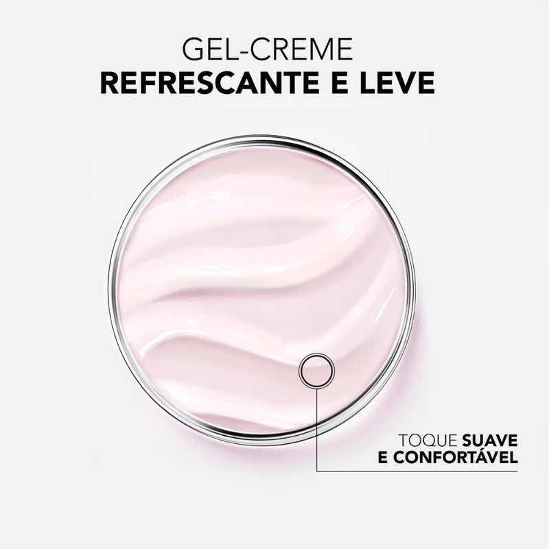 Textura gel-creme refrescante: Leve, funde-se na pele, não oleosa, não pegajosa. Acabamento fresco e natural.