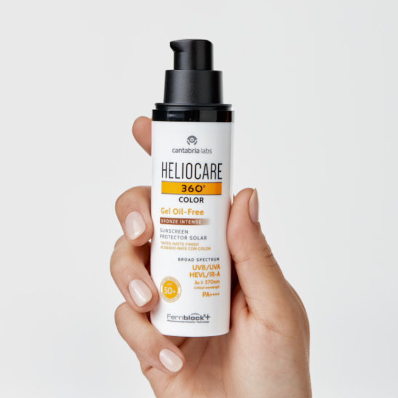 O protetor solar Heliocare 360º Color Gel Oil-Free SPF50+ Bronze Intense com uma fórmula Oil-free, permite num único gesto aplicar a maquilhagem e o fotoprotetor para um tom de pele uniforme e natural.