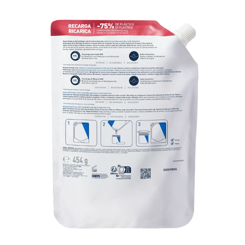 Hidratação intensiva e de longa duração para rosto e corpo que necessitam de nutrição profunda. Desenvolvido com dermatologistas, este creme de textura rica mas não oleosa é formulado com 3 Ceramidas Essenciais, Ácido Hialurónico, Glicerina e a tecnologia exclusiva MVE. Este sistema de libertação controlada fornece hidratação contínua durante 24 horas, ajudando a reparar ativamente a barreira protetora da pele. Proporciona alívio imediato: reduz a sensação de prurido em 60% e o ardor em 55%* após a primeira aplicação.