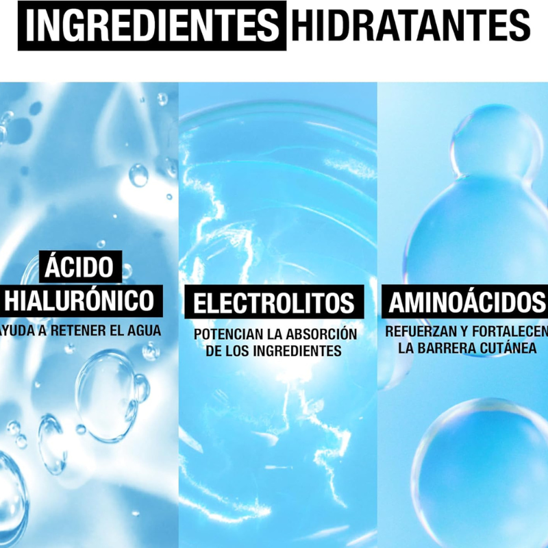 Inclui gel de limpeza 200ml, gel de água hidratante 50ml (72h de hidratação) e fluido com SPF50 15ml. Com oferta do fluido SPF50 e de um necessaire prático.