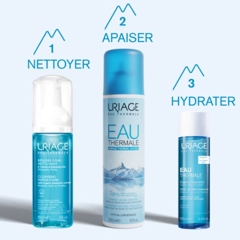 AQUA/Eau Uriage — DIGLYCERIN — 1,2-HEXANEDIOL — ALBIZIA JULIBRISSIN BARK EXTRACT — GLYCERIN — XYLITYLGLUCOSIDE — ANHYDROXYLITOL — INULIN — PEG-80 GLYCERYL COCOATE — XYLITOL — SODIUM HYALURONATE — CALCIUM GLUCONATE — GLUCOSE — PARFUM (FRAGRANCE) — XANTHAN GUM — POLYQUATERNIUM-51 — MAGNESIUM GLUCONATE — SODIUM BENZOATE — CITRIC ACID.