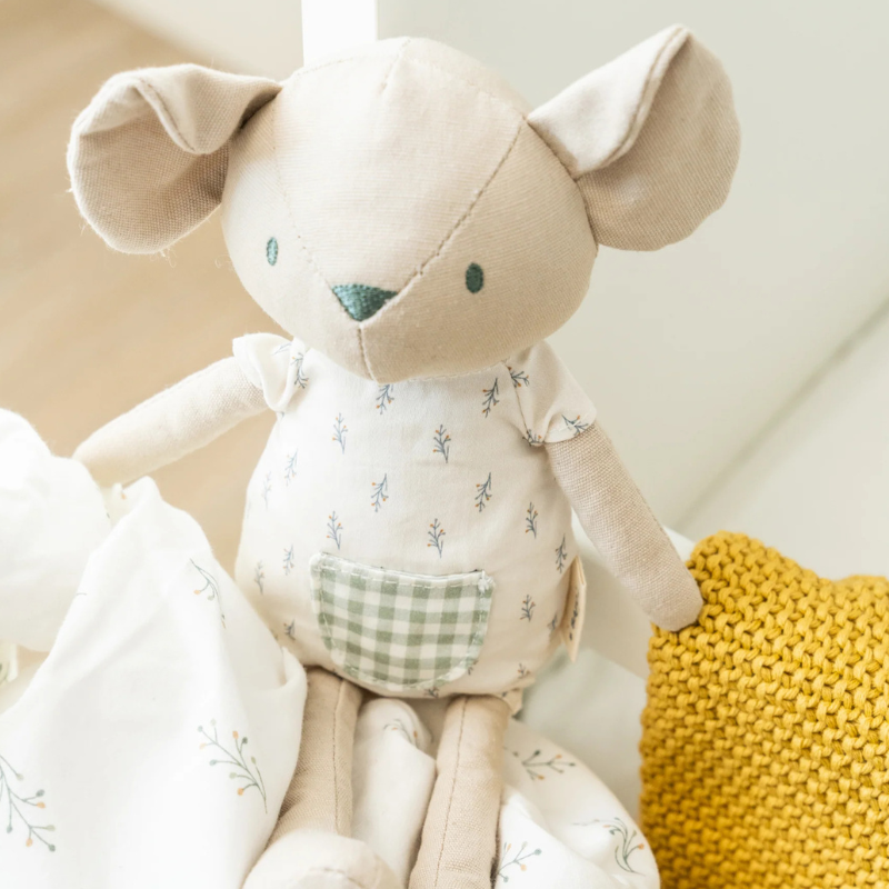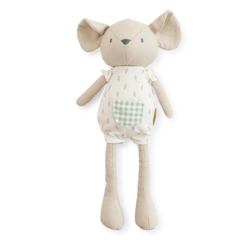 O Ratinho Ginger, com o seu encantador padrão de flores e Vichy, é o companheiro perfeito para o teu pequeno. Macio, aconchegante e seguro, ideal para brincar e aprender desde o nascimento.