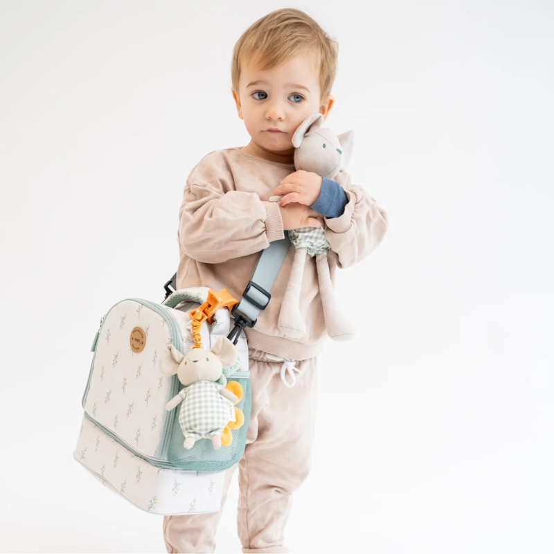 A roca da coleção "Spring Cottage" da Saro transforma cada passeio numa aventura divertida. Com texturas, espelho, guizo e pinça para prender no berço, carrinho ou parque.