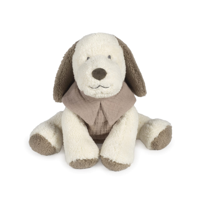 Peluche cão Walking Mum Sintra bege, ultra suave e seguro desde o nascimento. Em poliéster e muselina de algodão. Ideal para abraçar.