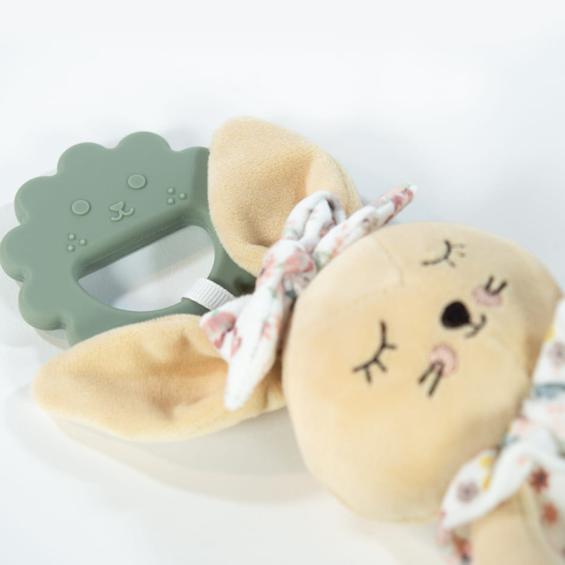 Mordedor em silicone: Ajuda a acalmar as gengivas durante a dentição. Seguro, macio, fácil de agarrar.