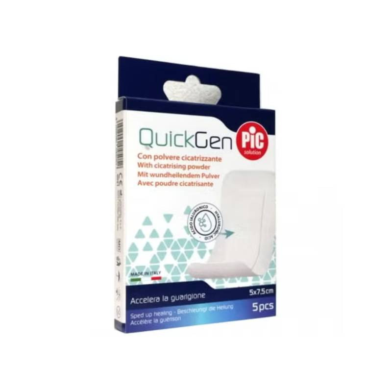 Pic Solution QuickGen Penso 5x7,5cm x5 protege a ferida e acelera o processo de cicatrização. Recomendado para escoriações e queimaduras com exsudato.