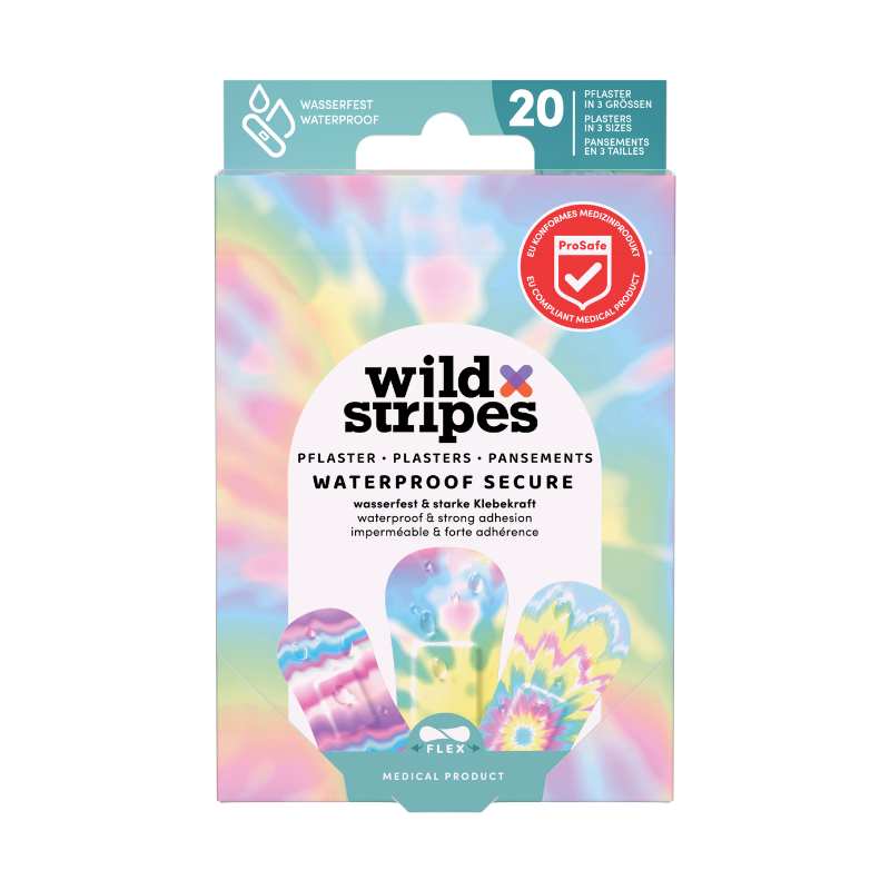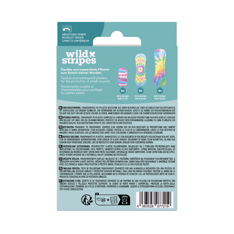 Os Pensos Wild Stripes Waterproof Rainbow apresentam cores vibrantes em arco-íris, sendo ideais para a pele sensível, ao mesmo tempo em que oferecem proteção contra pequenas feridas, cortes e abrasões.