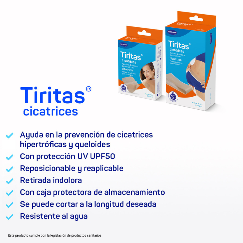 O Tiritas Cicatrices é um penso médico em silicone, especialmente desenvolvido para o cuidado prolongado de cicatrizes. Ideal para cicatrizes lineares, hipertróficas ou queloides, o seu formato tira de 4x30 cm é recortável, adaptando-se a diferentes zonas do corpo.