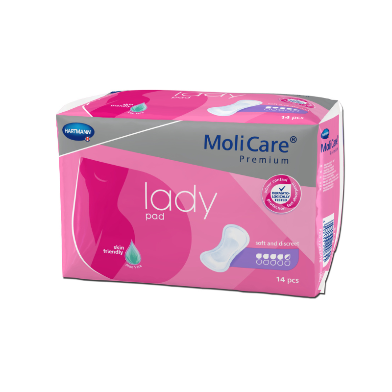 Os pensos absorventes femininos Molicare Premium Lady Pad são anatomicamente moldados para garantir segurança e proteção contra perdas de urina com absorção de 2 gotas.
