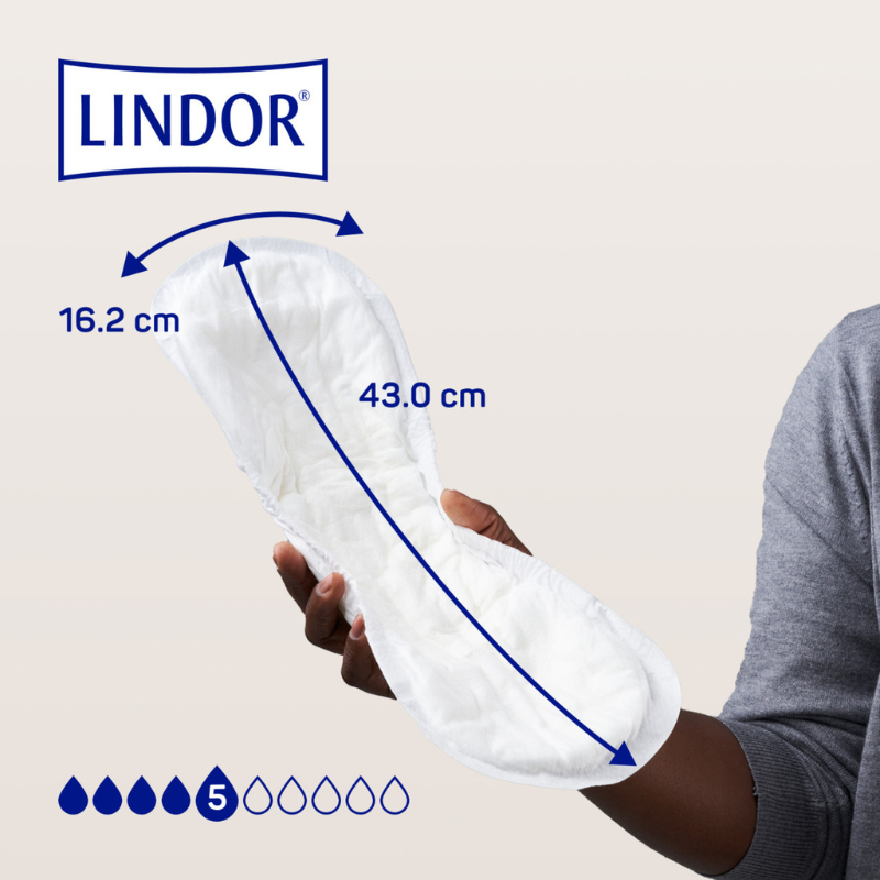 Os pensos absorventes Lindor Lady Pad Maxi 5 gotas oferecem uma proteção eficaz contra a incontinência urinária em mulheres, mantendo a pele saudável e confortável.