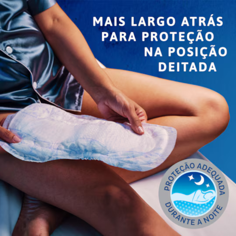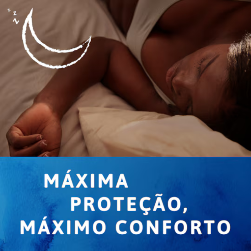 Alta absorção e conforto: Proporciona absorção eficaz, mantendo a pele seca e confortável durante toda a noite.