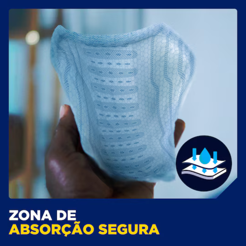 Tripla proteção: Protege contra perdas de urina, odores indesejados e mantém a pele seca e fresca.