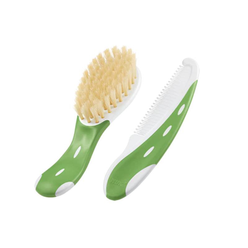 Nuk Escova e Pente +0M com cerdas 100% naturais é ideal para o cuidado diário do cabelo do bebé.