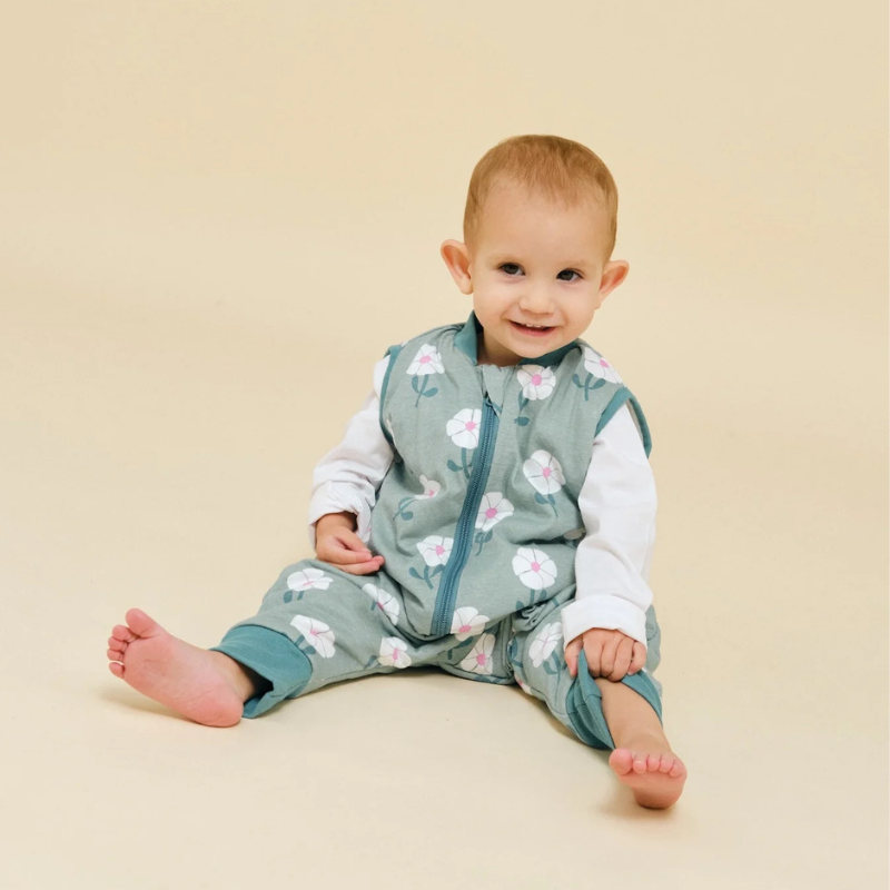 O macacão ideal para noites frescas e dias de brincadeira! Levemente acolchoado, TOG 1, próprio para temperaturas entre 21º e 24ºC. Veste-se sobre o pijama, oferecendo liberdade total de movimento. Perfeito para usar em cadeiras altas, carrinhos ou no chão. Este modelo não inclui meias. Feito com algodão sustentável e materiais reciclados.