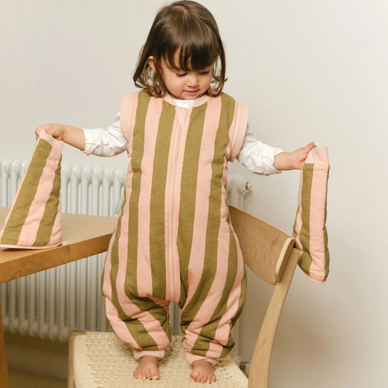Aconchego em tons suaves para o inverno! Macacão quentinho TOG 2.5, próprio para temperaturas até 21ºC ou inferiores. Veste-se sobre o pijama e oferece liberdade total de movimento para dormir, gatinhar, brincar ou andar. Pode ser usado em cadeiras altas, cadeiras auto e carrinhos. Este modelo não inclui sapatilhas. Feito com algodão sustentável e materiais reciclados.