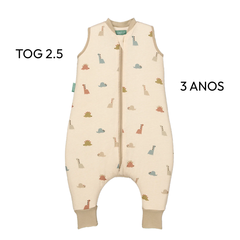 Aconchego em tons suaves para o inverno! Macacão quentinho TOG 2.5, próprio para temperaturas até 21ºC ou inferiores. Veste-se sobre o pijama e oferece liberdade total de movimento para dormir, gatinhar, brincar ou andar. Pode ser usado em cadeiras altas, cadeiras auto e carrinhos. Este modelo não inclui sapatilhas. Feito com algodão sustentável e materiais reciclados.