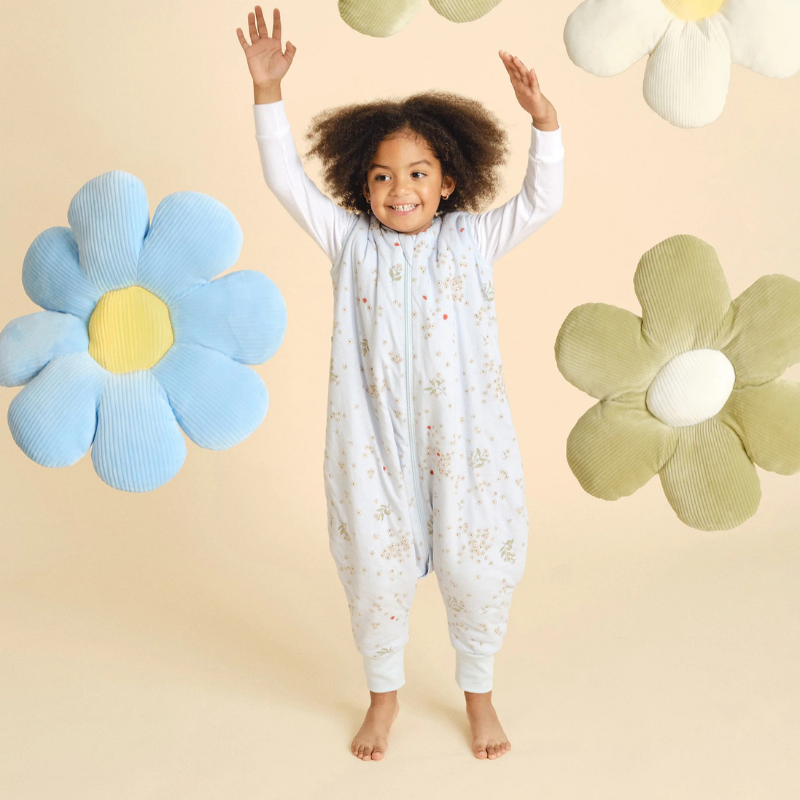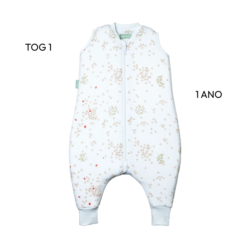 O macacão ideal para noites frescas e dias de brincadeira! Levemente acolchoado, TOG 1, próprio para temperaturas entre 21º e 24ºC. Veste-se sobre o pijama, oferecendo liberdade total de movimento. Perfeito para usar em cadeiras altas, carrinhos ou no chão. Este modelo não inclui meias. Feito com algodão sustentável e materiais reciclados.