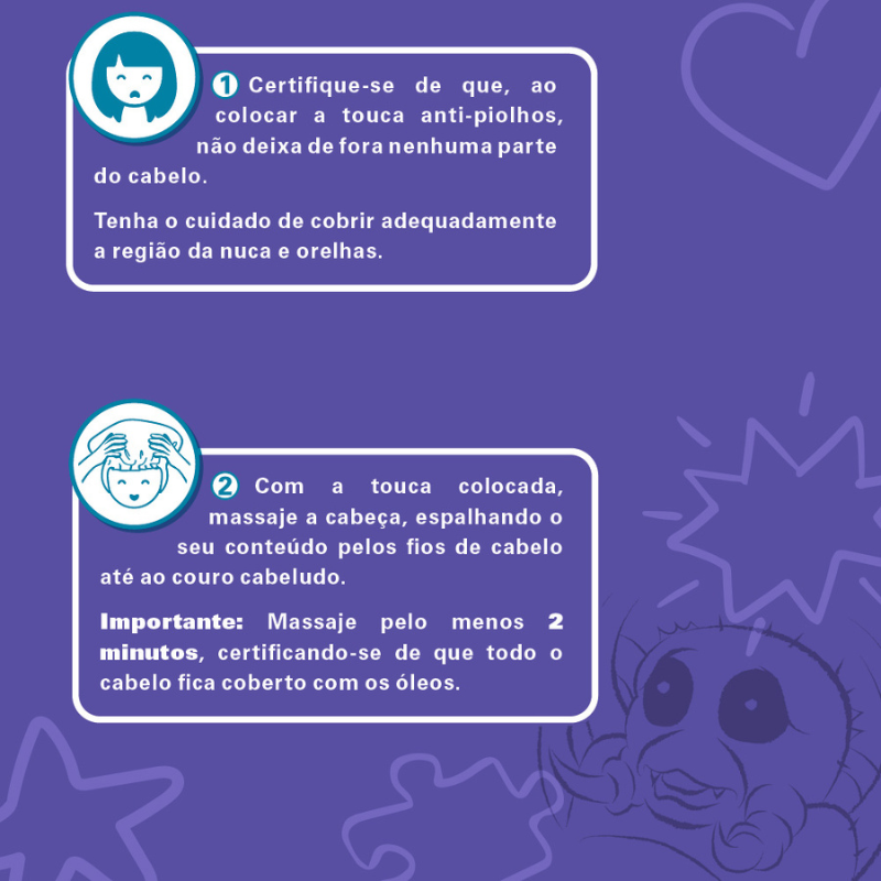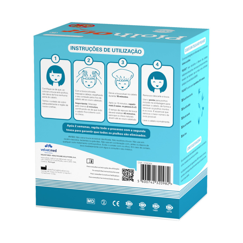 Piolhout Touca Anti-Piolhos é um tratamento 100% natural para eliminar piolhos e lêndeas, composto por 2 toucas e um pente. Utiliza um método inovador e suave, que remove os parasitas por asfixia por meio de toucas descartáveis impregnadas com óleos essenciais.