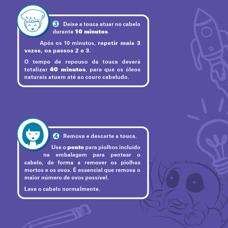 Este tratamento inovador elimina piolhos e lêndeas em apenas 2 minutos de aplicação. A sua fórmula sem insecticidas é suave para o cabelo e couro cabeludo, proporcionando uma ação rápida e eficaz contra infestação.