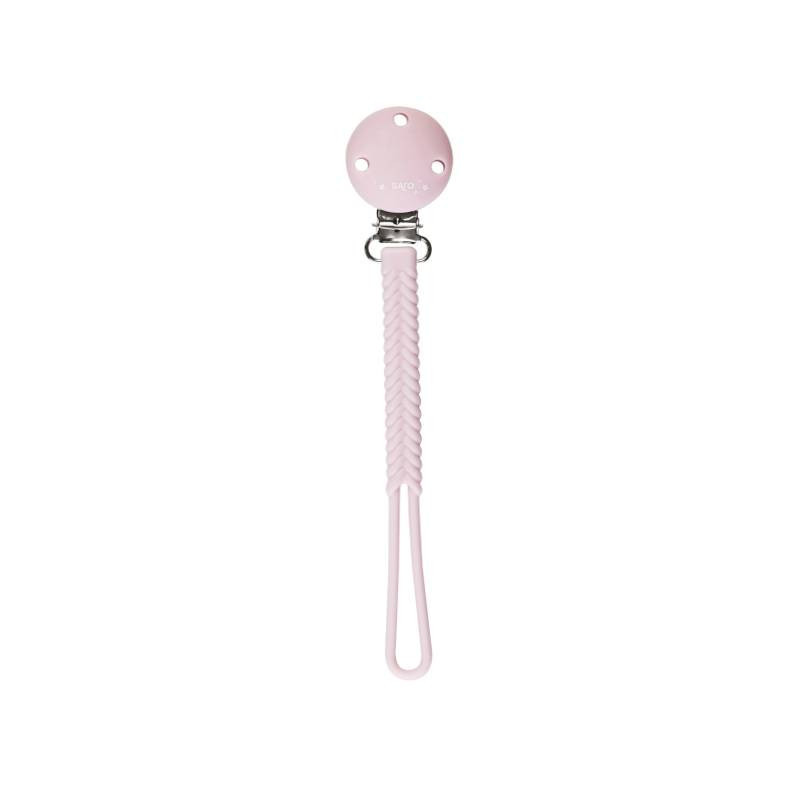 Saro Porta-Chupeta Trança é uma corrente de silicone com um sistema prático para pendurar à roupa, desta forma não perde de vista e evita que caia.