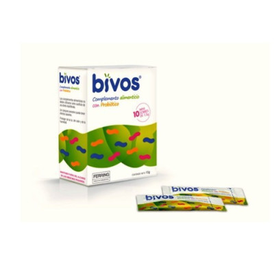 BIVOS Saquetas é um suplemento probiótico em pó com a estirpe Lactobacillus rhamnosus GG (LGG®), uma das mais estudadas do mundo. Apoia a saúde digestiva de toda a família. Prático, em saquetas individuais de dose única (1,5g). Embalagem com 10 saquetas.
