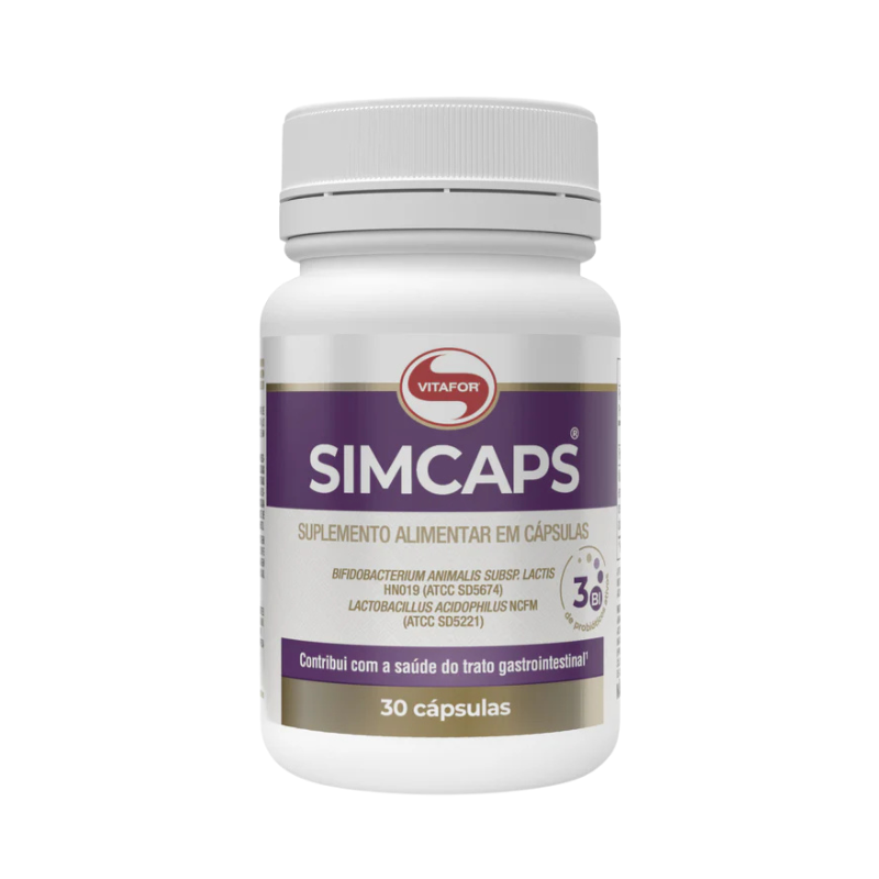 Vitafor Simcaps Cápsulas é um probiótico que ajuda a promover a saúde do trato gastrointestinal.