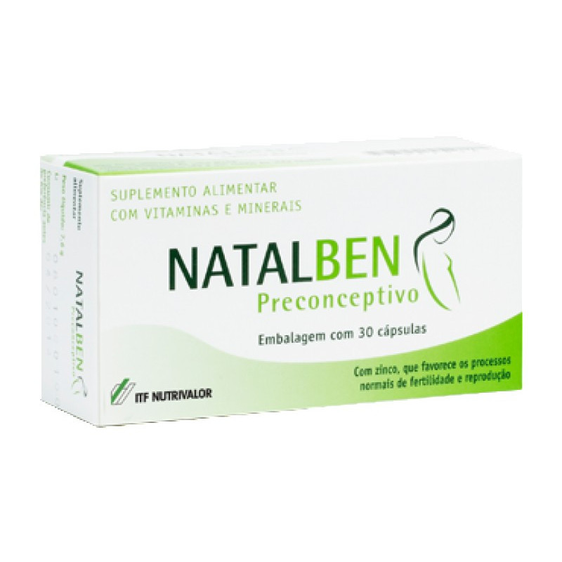 O Natalben Preconceptivo® é um suplemento alimentar que, juntamente com a dieta, contribui para otimizar a saúde reprodutiva normal da mulher. Adicionalmente ajuda a conseguir o estado nutricional adequado ao correto desenvolvimento fetal.