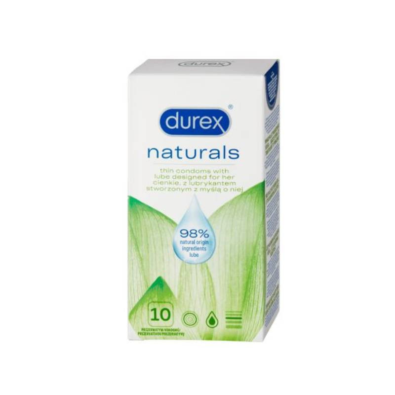 Os preservativos Durex Naturals são fabricados em látex e contêm um lubrificante à base de água. São suaves e finos, proporcionando maior sensibilidade, sem corantes nem sabores artificiais.