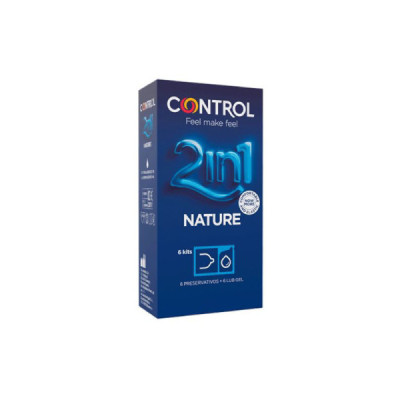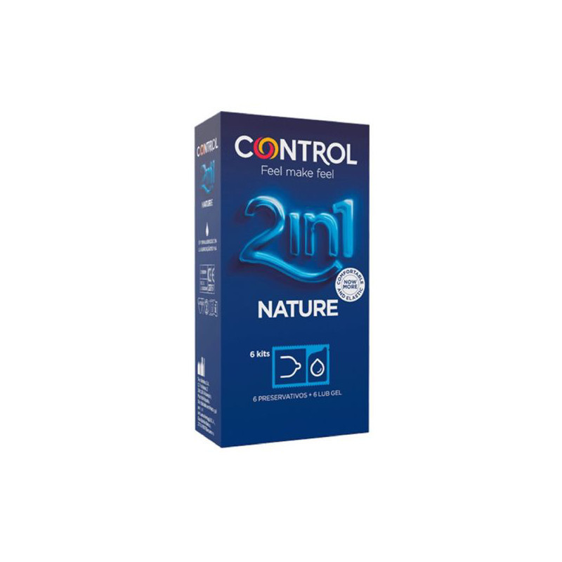 Control 2in1 Nature Preservativos é um pack composto por Control Nature Preservativos (6 preservativos) e Control Nature Gel Lubrificante (6 géis).