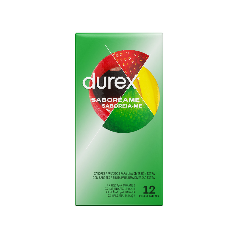 Os preservativos Durex Saboréame são uma seleção de preservativos aromatizados com banana, laranja, morango e maçã, ideais para sexo oral.