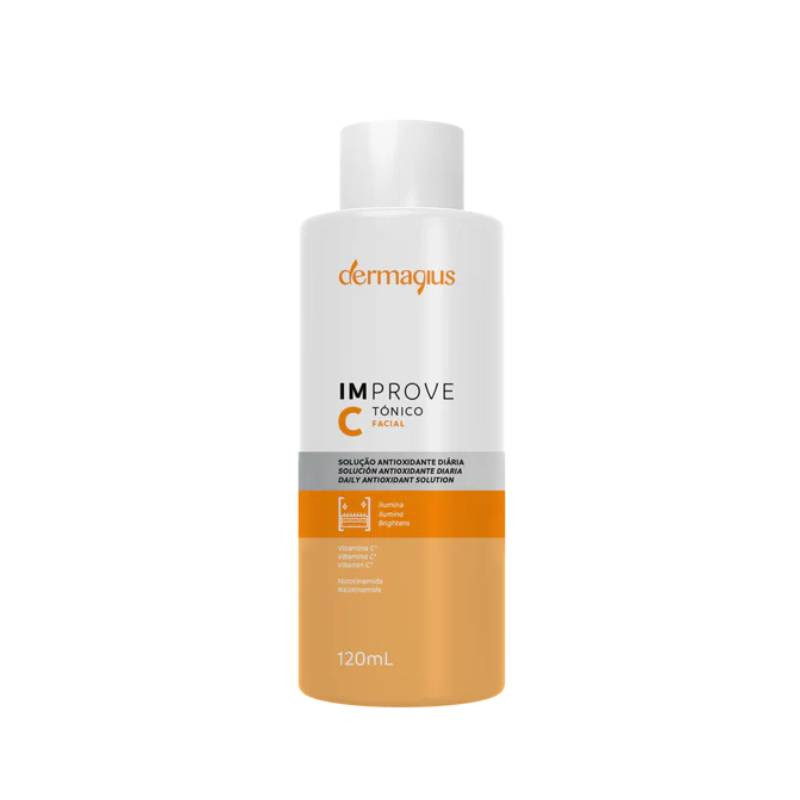 Dermagius Improve C Tónico Facial 120ml ajuda a controlar a oleosidade sem comprometer o brilho natural da pele, enquanto reequilibra o pH e fortalece a barreira cutânea.