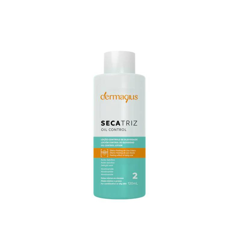 Dermagius Secatriz Oil Control Loção 120ml é um gel secativo desenvolvido para controlar a oleosidade e tratar imperfeições causadas pela acne.