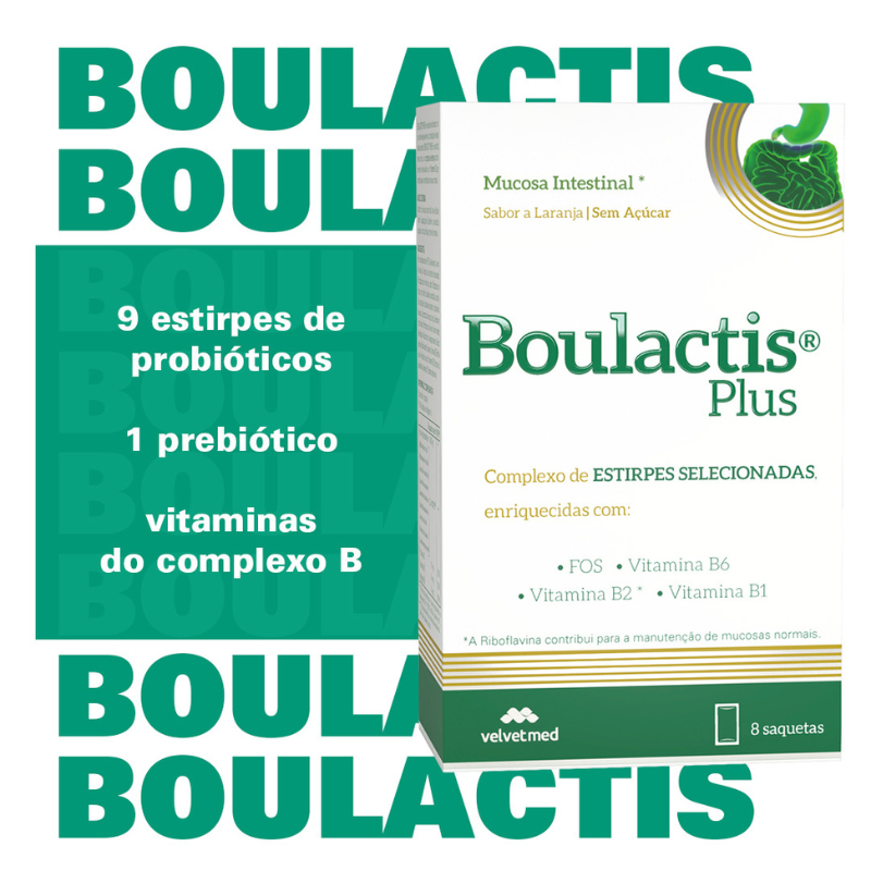 O BOULACTIS PLUS Simbiótico é uma solução completa para a saúde intestinal. Combina probióticos, prebióticos e Vitaminas B para alívio da diarreia (inclusive por antibióticos), regularização da flora e apoio à mucosa intestinal. Com sabor a laranja, é adequado para toda a família a partir dos 3 anos. Apresentação: 8 saquetas