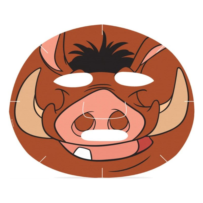 Mad Beauty Disney Rei Leão Máscara Facial Pumba biodegradável com fragrância de melancia que ajuda a deixar a pele fresca e revitalizada.