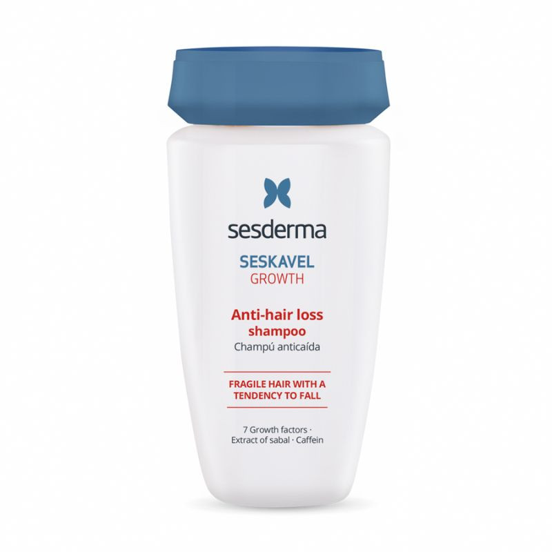 Sesderma Seskavel Antiqueda com componentes que estimulam o crescimento capilar, ajudam a prevenir e a travar a queda, proporcionando força, espessura e volume ao cabelo.