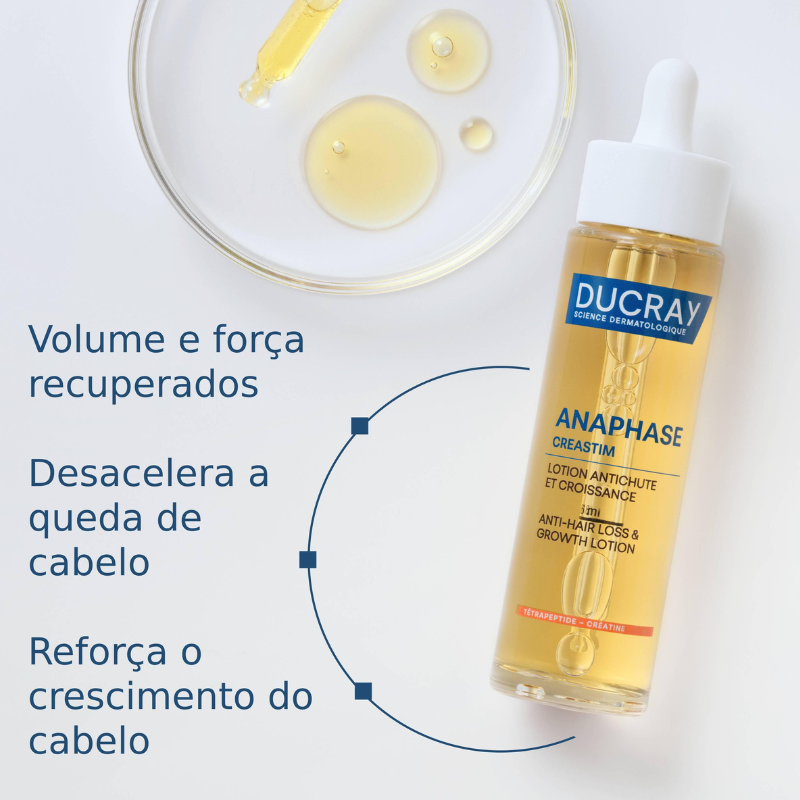 A Anaphase Creastim Loção foi especialmente desenvolvida para combater a queda de cabelo reacional, causada por stress, pós-parto, fadiga, cirurgias ou mudanças sazonais.