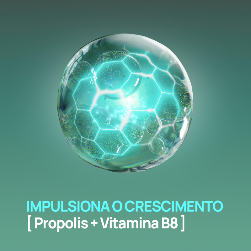 Desenvolvido com a tecnologia Própolis K85™, óleo essencial de alecrim, biotina e arginina, estimula a microcirculação na raiz e ajuda a fortalecer a fibra capilar desde a primeira aplicação.