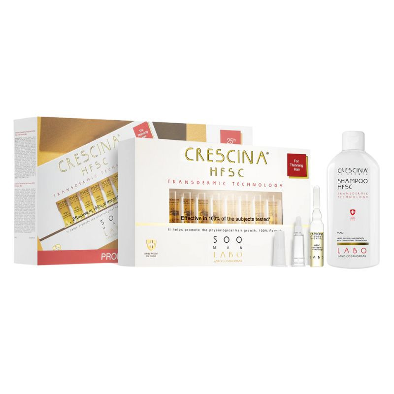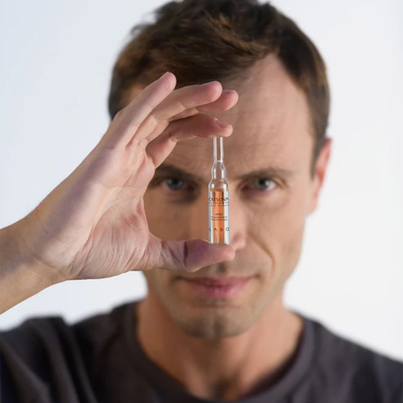 Crescina Transdermic HFSC 500 Homem é um tratamento completo em ampolas, desenvolvido especificamente para homens com perda de densidade capilar de grau moderado.