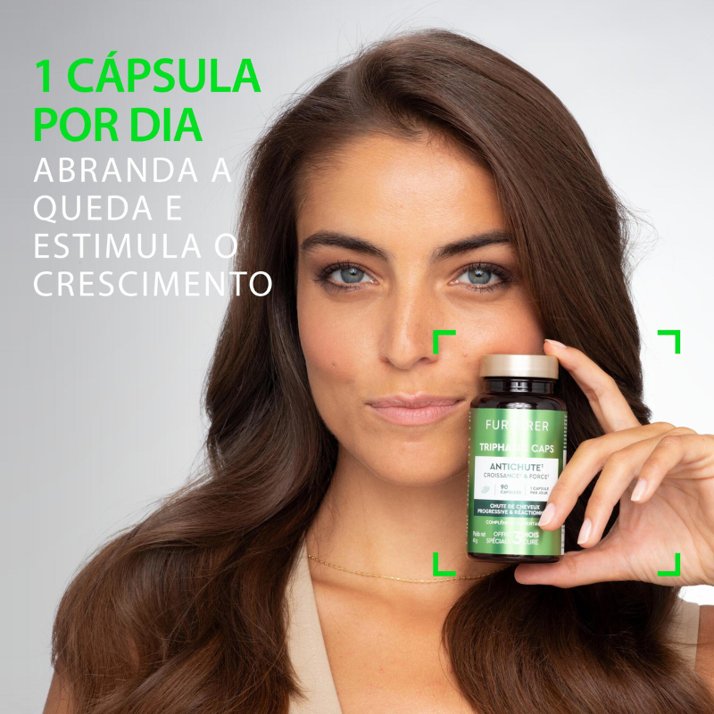O cabelo que cai no ralo do duche ou na escova não tem de ser a tua nova realidade. Se a queda se tornou uma preocupação devido ao stresse, fadiga, pós-parto ou fatores hereditários, chega a hora de agir de dentro para fora. As Cápsulas Triphasic Anti-Queda da René Furterer são um tratamento oral de alta eficácia que trabalha na raiz do problema. Com uma fórmula concentrada e 100% vegan, atuam diretamente no bulbo capilar para travar a queda e fornecer os nutrientes essenciais para um cabelo visivelmente mais forte e resistente.