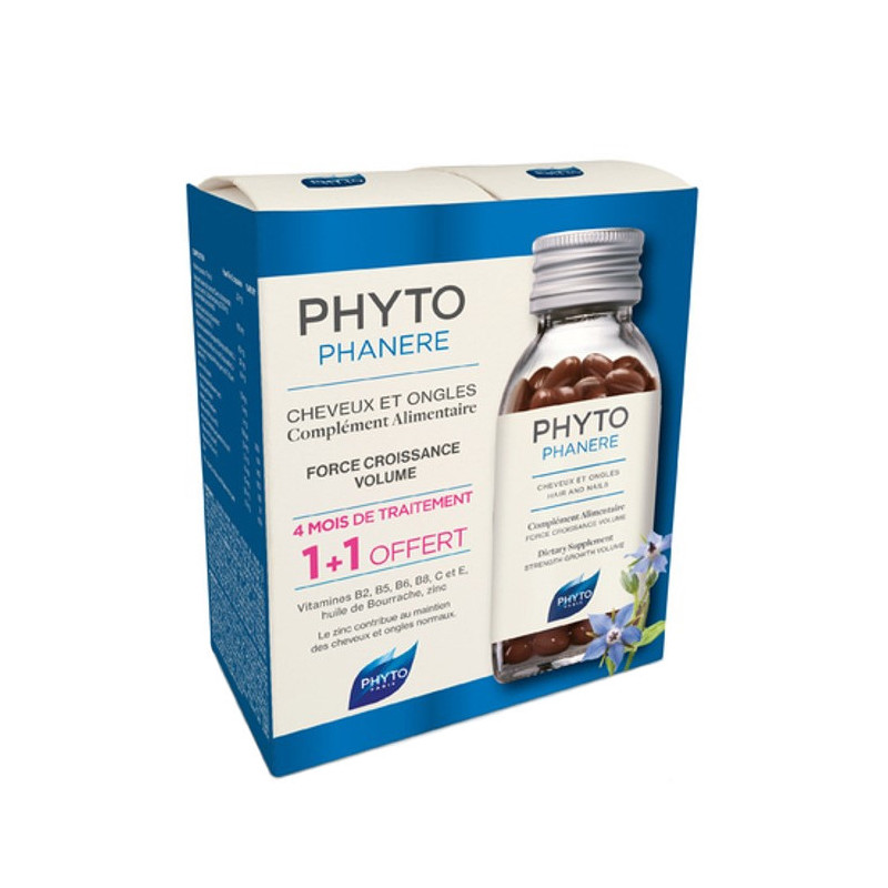 PHYTO Phytophanère é um suplemento alimentar que confere força, crescimento e volume ao cabelo e às unhas, através da sua fórmula com: Vitamina B6 - que contribui para a produção de cisteína, constituinte da queratina;Vitamina B8 e o zinco - contribuem para a qualidade e beleza.Como utilizar:2 cápsulas por dia, com um copo de água, de preferência de manhã.Pack de 4 meses
