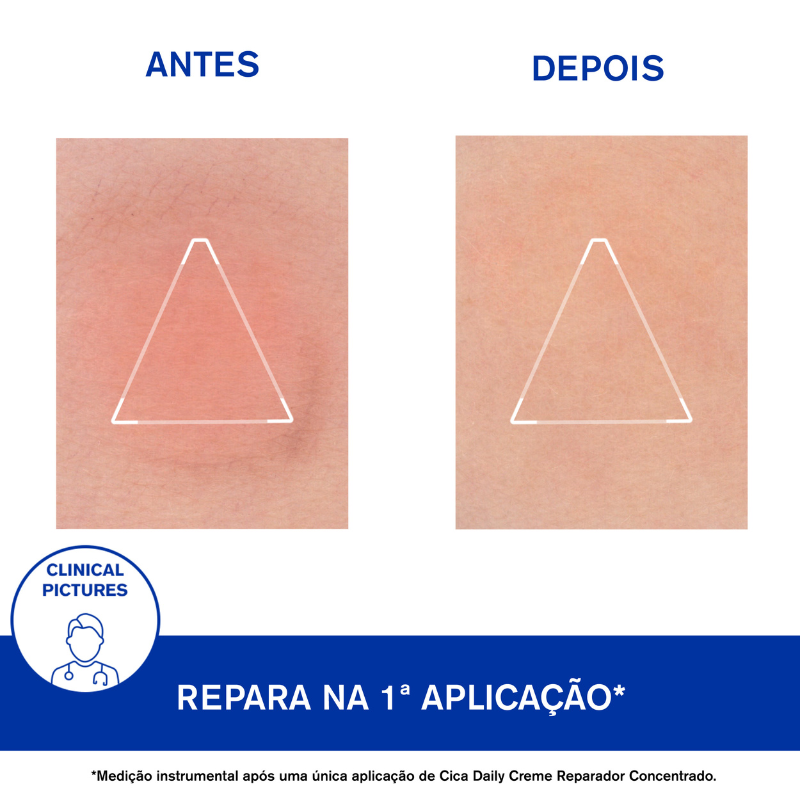 Inspirado no conhecimento avançado da tripla barreira cutânea, o Cica Daily Creme Reparador Concentrado foi desenvolvido para hidratar, acalmar e regenerar a pele fragilizada pelas agressões diárias (vermelhidão, desconforto, imperfeições).
