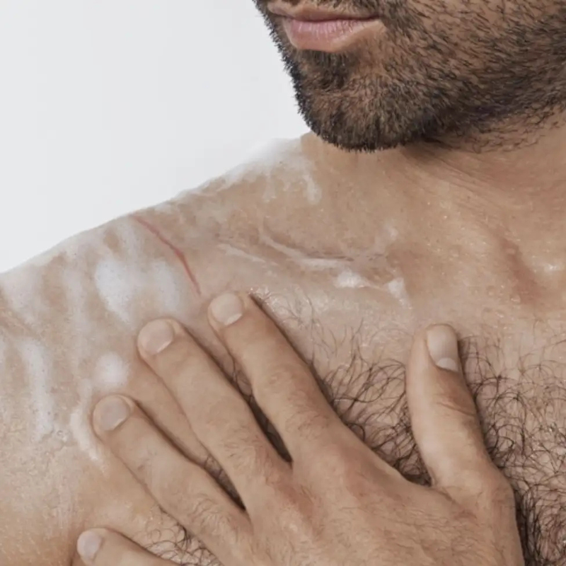 Limpeza suave: Limpa delicadamente a pele devido à presença de um agente antimicrobiano e tensoativos suaves. As impurezas são removidas para prevenir o risco de infeção, contribuindo para melhorar o processo natural de cicatrização.