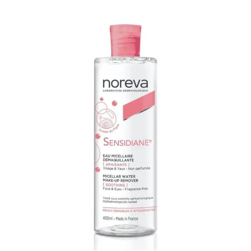 Noreva Sensidiane Água Micelar desmaquilha e limpa com suavidade o rosto, olhos e lábios da pele sensível e intolerante.
