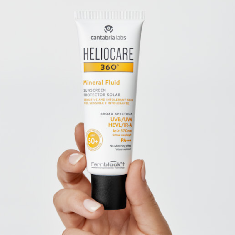 Heliocare 360º Fluido Mineral SPF50+ é um protetor solar muito alto numa inovadora textura fluída suave e cremosa, rapidamente absorvida pela pele e com efeito matificante.