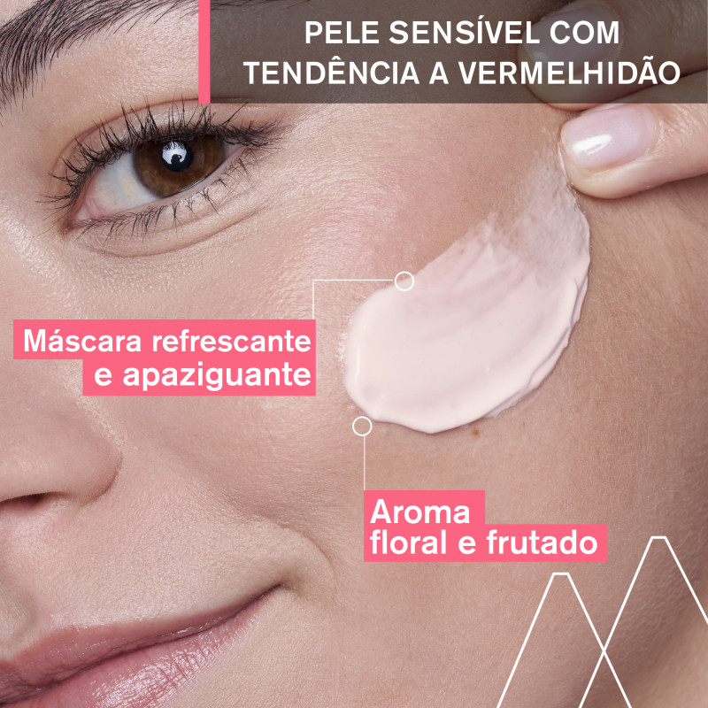 Máscara em creme anti-vermelhidão para pele sensível com rosácea ou couperose. Acalma de imediato, hidrata intensamente e reforça a barreira cutânea e os vasos sanguíneos. Com Água Termal Uriage, Cerasterol-2F®, extratos de ginseng e algas vermelhas.