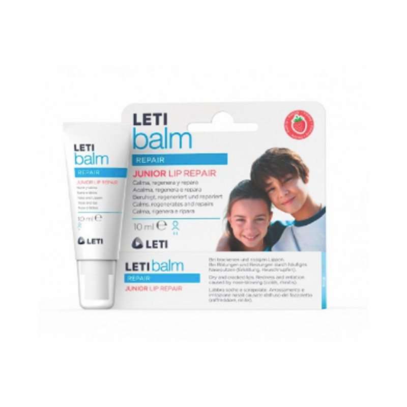 Letibalm Repair Junior Lip Repair é um cuidado de lábios que acalma, regenera e repara os lábios secos e gretados, assim como as irritações causadas pelo assoar. Indicado para crianças a partir de 1 ano de idade. Melhora a hidratação, nutre a pele e diminui o repuxamento e a irritação. Reduz as gretas e a descamação dos lábios, a vermelhidão da zona nasal e protege dos agentes externos (frio, aquecimento, ar condicionado) formando uma película protetora.
