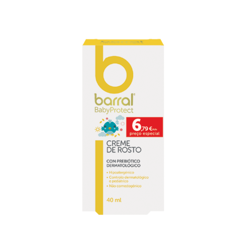 Barral BabyProtect Creme de Rosto 40ml suaviza a pele sensível e delicada dos recém-nascidos, bebés e crianças.