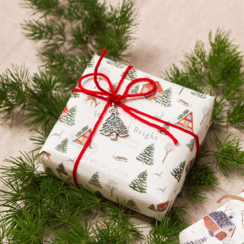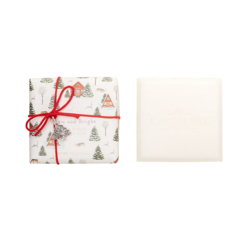 Como uma lareira a crepitar numa noite de inverno, este sabonete envolve-te no seu aroma que evoca os bosques serenos e a tranquilidade dos momentos passados em boa companhia. E para tornar a experiência ainda mais especial, cada sabonete é cuidadosamente embrulhado à mão num papel ilustrado que captura toda a magia e diversão do inverno.