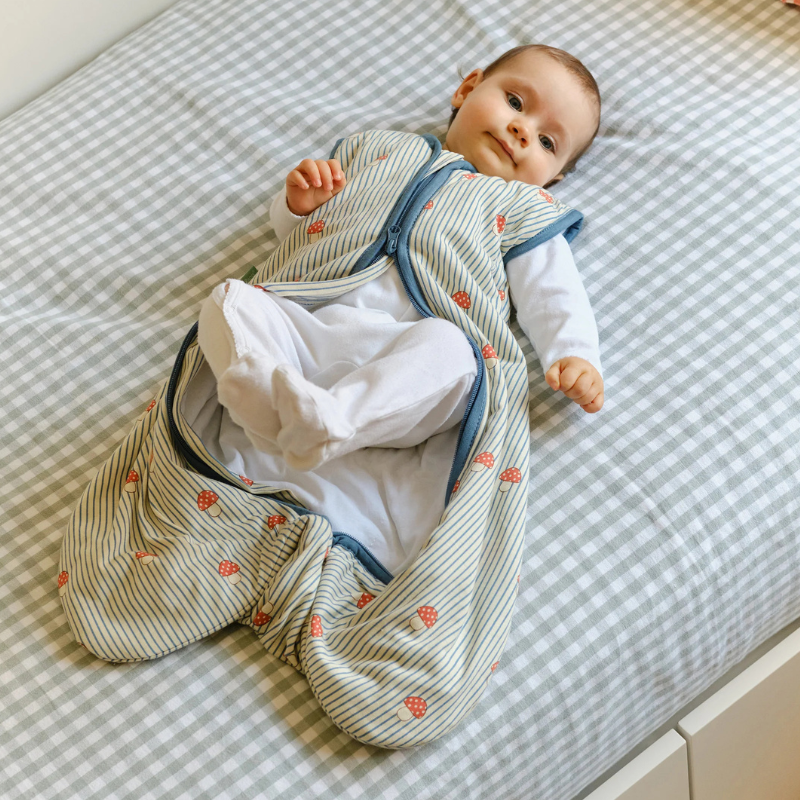 Saco cama Molis&Co TOG 1 para 0-6 meses, meia-entação (21-23°C). 100% algodão suave, levemente acolchoado. Substitui mantas com segurança. Certificado OEKO-TEX e norma europeia. Feito com algodão sustentável e materiais reciclados. O equilíbrio perfeito para noites amenas.